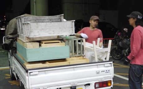 ばらしたものを、2台の車へ運びます。